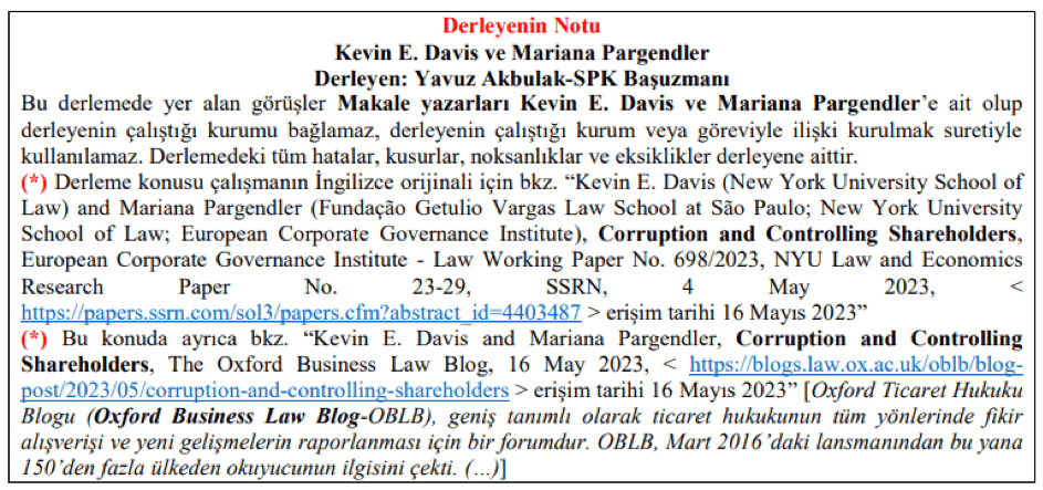 Hiç kimse, hâkim hissedarlar liderliğindeki rüşvetle mücadelenin kolay olacağı yanılsamasına kapılmamalıdır. Kontrol gücüne sahip hissedarlar, planlarını bozma veya eylemlerinden yasal olarak sorumlu tutma çabalarına direnmek için genellikle hem ekonomik kaynaklara hem de siyasi nüfuza sahiptir. Yine de hâkim hissedarlar önderliğindeki rüşvet, son Yabancı (Mahreçli) Yolsuzluk Uygulamaları Yasası uygulama eylemlerinin önemsiz olmayan bir azınlığını ve Brezilya’nın Araba Yıkama Operasyonu kapsamındaki kurumsal yolsuzluk (çürüme) soruşturmalarının (investigations of corporate corruption) çoğunu oluşturmaktadır. İşte bu makalede, önemli siyasi engeller olsa bile, rüşvete katılanlar olarak hissedarları kontrol etmeye özel odaklanmanın, standart kurumsal sorumluluk reçetelerine kıyasla daha fazla caydırıcı fayda ve daha düşük sosyal maliyet sunduğu tartışılmaktadır.